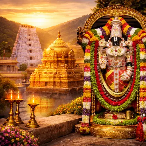 Tirupati is the Vaikunta (abode of Lord Vishnu) of the Kali Yuga age. In the Kali Yuga, to liberate devotees through darshan (viewing) prayers and worship, Lord Venkateswara himself, the manifest form of Sri Maha Vishnu, incarnated in the Ananda Nilayam sanctuary on the Tirupati hills. Located on the picturesque Seshachalam Hill Ranges, this temple occupies a unique place among the galaxy of sacred shrines and is accredited as being the most visited temple in India and the world as a whole.